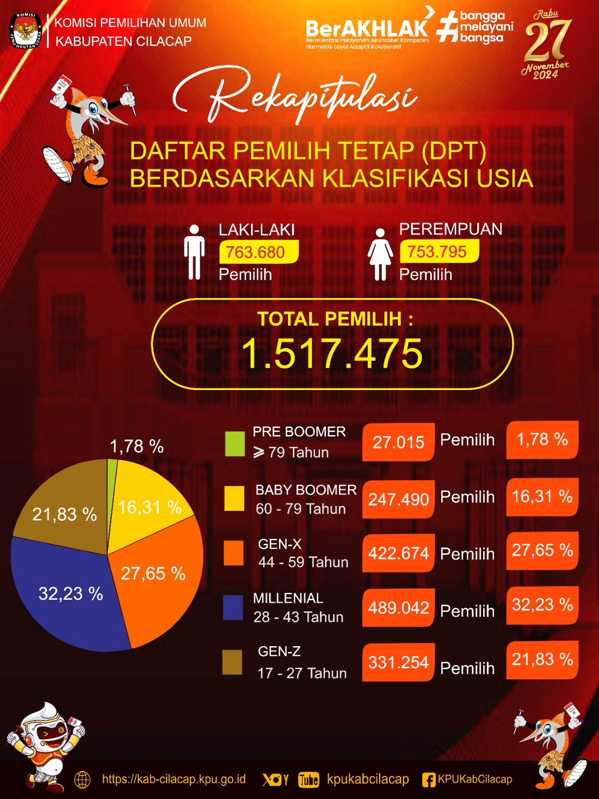 Infografis: Rekapitulasi DPT Pemilu 2024 Berdasarkan Klasifikasi Usia Sabtu, 12 Oktober 2024 18:23 111 . Baca Selengkapnya