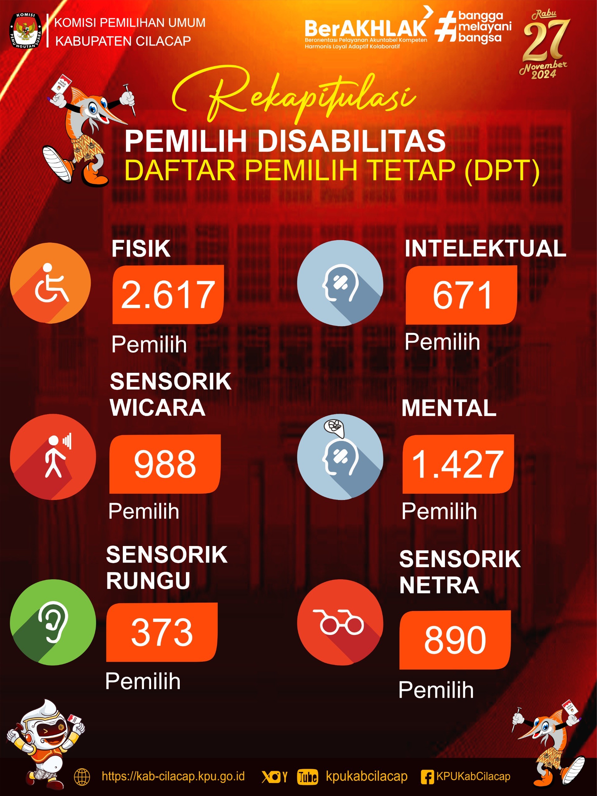 Infografis: Rekapitulasi Pemilih DIsabilitas Dalam DPT Pemilu 2024 Sabtu, 12 Oktober 2024 18:24 141 . Baca Selengkapnya