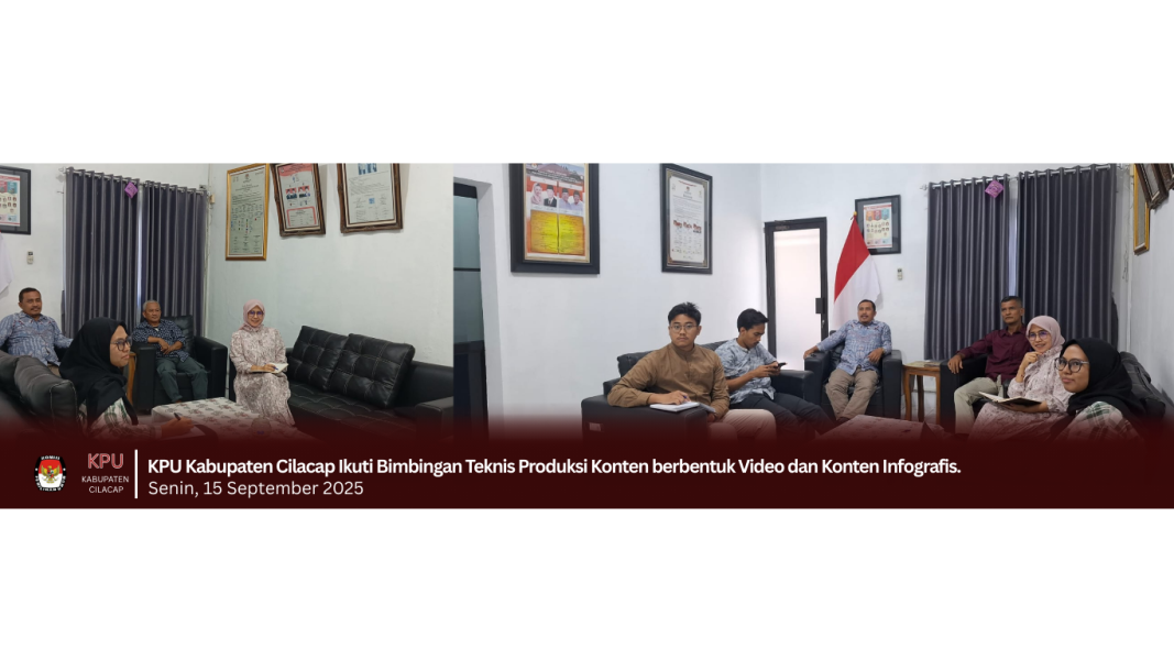 CILACAP- Komisi Pemilihan Umum (KPU) Kabupaten Cilacap hadir dalam kegiatan Bimbingan Teknis Bimbingan Teknis Produksi Konten berbentuk Video dan Konten Infografis pada Pengelolaan Website dan Medsos Jaringan Dokumentasi dan Informasi Hukum KPU Provinsi dan KPU Kab/Kota Se-Jawa Tengah yang diselenggarakan oleh KPU Provinsi Jawa Tengah Senin (15/9/2025). Hadir dalam kegiatan tersebut Ketua KPU Kabupaten Cilacap (Weweng Maretno), Divisi Hukum dan Pengawasan (Munjiatun Mukaromah), Divisi Penyelenggaraan (Sinoto Hadi Warno) Kasubag Teknis dan Hukum (Hari Sugiarto) Staf Hukum (Aini Auliya dan Zulfan Hikami).