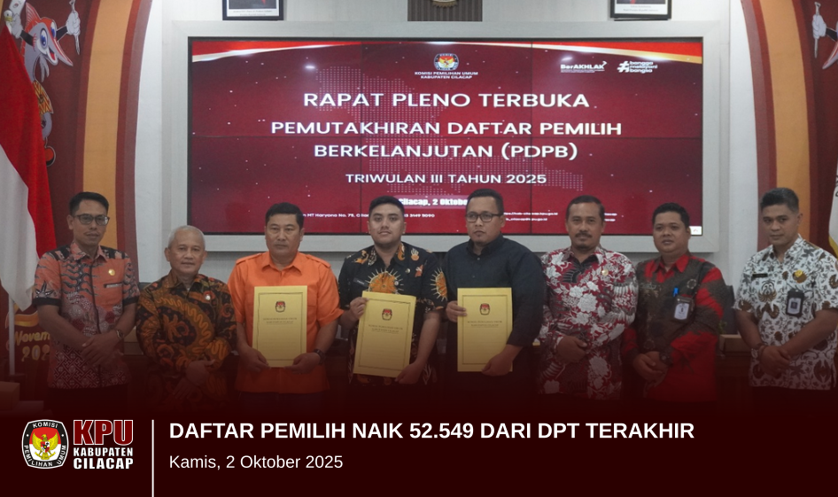 Penyelenggaraan Rapat Pleno Terbuka yang diselenggarakan dikantor KPU Cilacap, mengacu dan memperhatikan Surat dari KPU No. 1577/PP.05-SD/13/2025 tanggal 10 September 2025, tentang persiapan penyusunan Rekapitulasi PDPB triwulan III tahun 2025;