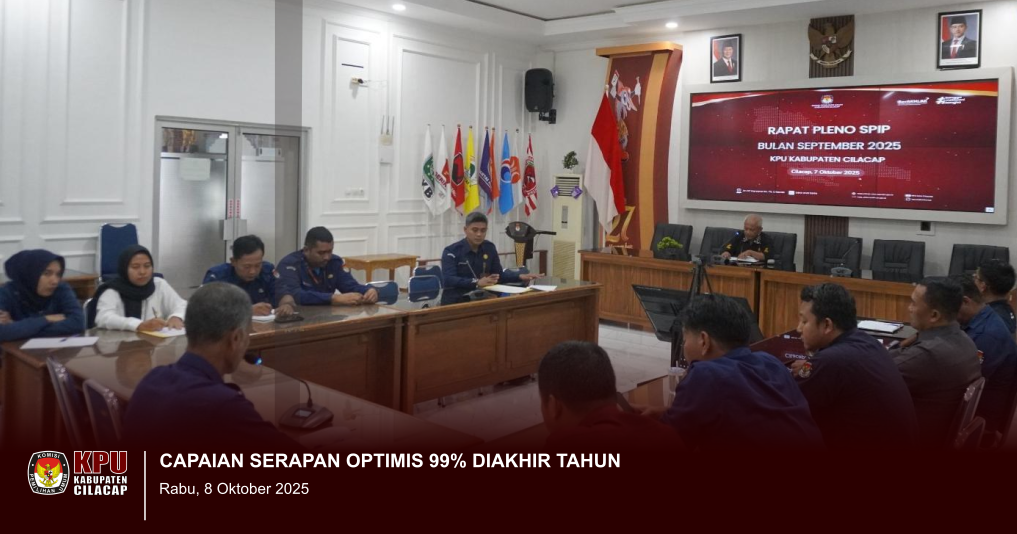 CILACAP - Selasa, 7 Oktober 2025 Ketua dan anggota KPU Kabupaten Cilacap beserta Satgas E-SPIP (jajaran sekretariat) melaksanakan rapat pleno Sistem Pengendalian Internal Pemerintah (SPIP).
