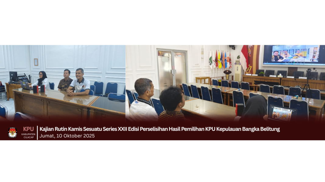 CILACAP- Komisi Pemilihan Umum (KPU) Kabupaten Cilacap hadir dalam kegiatan Kajian Rutin “Kamis Sesuatu” Seri ke XXII Divisi Hukum dan Pengawasan Tahun 2025 dengan Putusan Perkara Nomor 266/PHPU.GUB-XXIII/2025 PHPU Gubernur dan Wakil Gubernur Kepulauan Bangka Belitung Tahun 2024 yang diselenggarakan oleh KPU Provinsi Jawa Tengah Jumat (10/10/2025). Hadir dalam kegiatan tersebut Kasubag Teknis Penyelenggaraan Pemilu dan Hukum (Hari Sugiarto) dan Staf Hukum (Aini Auliya dan Haryono).