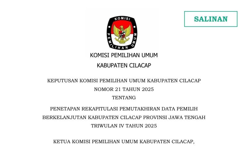 KPU Kabupaten Cilacap telah melakukan Rapat Pleno Terbuka Rekapitulasi Pemutakhiran Data Pemilih Berkelanjutan Triwulan IV. Senin, (8/12/2025).
