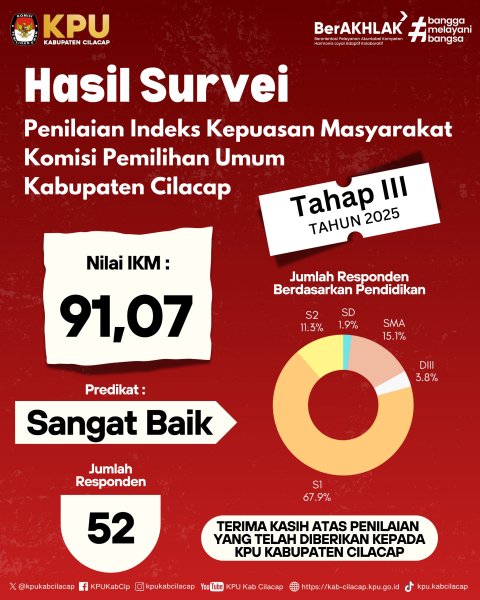 KPU Kabupaten Cilacap Raih Nilai 91,07 dengan Predikat Sangat Baik dalam Survei Kepuasan Masyarakat Tahap III Tahun 2025