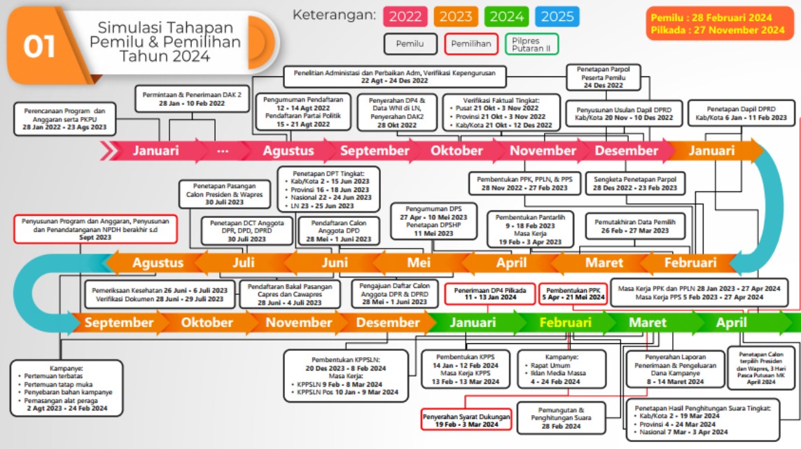 a)Jadwal Tahapan Pemilu dengan hari Pemungutan Suara di bulan Februari 2024, yakni tanggal 14 Februari 2024;