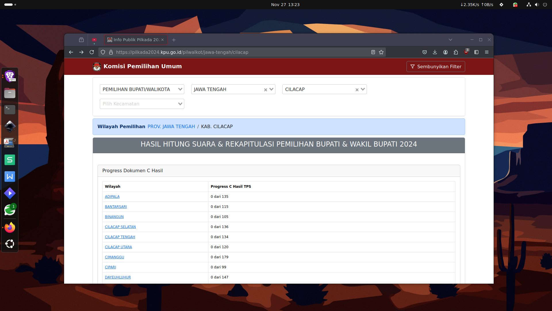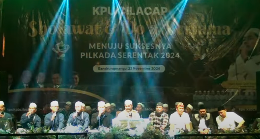 Cilacap, 22/11/24 - Demi tingkatkan partisipasi pemilih dalam pelaksanaan Pilkada serentak tahun 2024, KPU Kabupaten Cilacap menggelar acara Sosialisasi dalam bentuk kegiatan Doa dan Sholawat bersama yang dilaksanakan di Alun-alun Kecamatan Gandrungmangu.