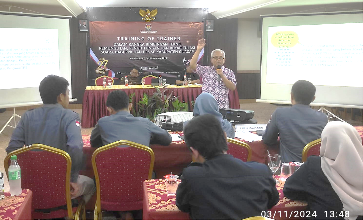 CILACAP - KPU Cilacap hari ini (Minggu, 27 Oktober 2024) menggelar rapat kerja dengan mengundang seluruh Ketua dan Anggota PPK Divisi Pemutakhiran Data Pemilih se-Kabupaten Cilacap. Raker yang dipimpin langsung oleh Anggota KPU Divisi Perencanaan Data dan Informasi, Khamilin, memiliki agenda utama Penyusunan Daftar Pemilih Pindahan (DPTb) di Pilkada 2024 yang pemungutannya akan dilaksanakan pada tanggal 27 November tahun ini. "Warga yang pada saat hari pemungutan tidak dapat menggunakan hak pilihnya dimana dia terdaftar, bisa melakukan pengurusan pindah memilih untuk dicatat dalam DPTb", Khamilin menjelaskan dalam raker ini. "DPTb adalah daftar yang berisi Pemilih yang telah terdaftar dalam DPT, namun karena keadaan tertentu Pemilih tidak dapat menggunakan haknya untuk memilih di TPS tempat yang bersangkutan terdaftar dan memberikan suara di TPS lain. DPTb ini untuk melengkapi DPT." Lebih lanjut, Khamilin menjelaskan mengenai kriteria pemilih yang dapat dicatat sebagai DPTb. Pada periode terakhir 28 Oktober ini terdapat 9 kriteria syarat pemilih masuk kedalam DPTb. 9 kriteria tersebut adalah menjalankan tugas di tempat lain pada saat hari pemungutan suara, menjalani rawat inap di fasilitas pelayanan kesehatan dan keluarga yang mendampingi, penyandang disabilitas yang menjalani perawatan di panti sosial atau panti rehabilitasi, menjalani rehabilitasi narkoba, menjadi tahanan di rumah tahanan atau lembaga pemasyarakatan atau terpidana yang sedang menjalani hukuman penjara atau kurungan, tugas belajar/menempuh pendidikan menengah atau tinggi, pindah domisili, tertimpa bencana alam dan bekerja diluar domisilinya. Selain kriteria di atas, ada 4 kriteria yang dapat melakukan pengurusan pindah memilih paling lambat 20 November 2024, yaitu pemilih yang bertugas di tempat lain, menjalani rawat inap (sakit), tertimpa bencana dan menjadi tahanan rutan/lapas. Disisi lain, Khamilin menekankan kepada seluruh penyelenggara, baik PPK, PPS maupun calon KPPS, dapat memahami istilah pindah memilih dan pemilih tambahan. "Penduduk yang memenuhi syarat sebagai pemilih namun tidak tercatat di DPT, dapat memberikan suaranya ditempat yang sesuai dengan alamat dalam KTP. Istilah pemilih seperti ini pada Pemilu lalu disebut dengan Daftar Pemilih Khusus (DPK), berbeda dengan Pilkada ini yang disebut dengan Daftar Pemilih Tambahan (DPK)", jelasnya. Ingin tahu lebih lengkap mengenai alur pindah memilih? Dapatkan disini . ~27/10/2024 Reporter:Ari Sukendro Editor:Abahewenk