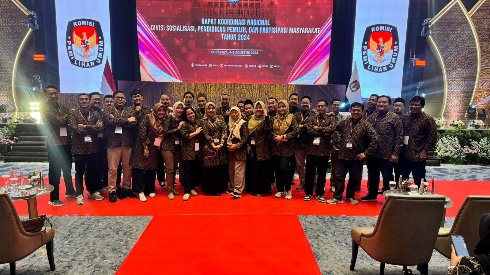 Surabaya, 5/8/2024 Pelaksanaan Pemilu Tahun 2024 belum tuntas, KPU sudah dihadapkan dengan pelaksanaan Tahapan Pilkada serentak tahun 2024. Hasil capaian partisipasi masyarakat pada pemilu 2024 mencapai angka 81%. Angka partisipasi yang sudah melampaui target angka Nasional yang ditetapkan ingin diraih kembali pada pelaksanaan pilkada serentak tahun 2024. Dalam rangka mencapai target angka partisipasi yang direncanakan, KPU mengumpulkan seluruh KPU Provinsi dan KPU Kabupaten/Kota seluruh Indonesia di Surabaya, tepatnya di Hotel Vasa Kota Surabaya dalam acara Rapat Koordinasi Nasional Divisi Sosialisasi, Pendidikan Pemilih dan Partisipasi Masyarakat. Hadir dari KPU Kabupaten Cilacap, M. Muhni selalu anggota KPU Divisi Sosdiklih Parmas bersama Hari Sugiarto, S. H., M. H., selaku Kasubbag Teknis Penyelenggaraan dan Parhumas. Dalam acara ini KPU menghadirkan Narasumber yang memiliki kompeten dari Kominfo, Praktisi, dan dari Akademisi. Dengan dilaksanakan kegiatan ini Ketua KPU RI, Mohammad Afifudin dalam sambutan dan pembukaan, berharap bahwa kegiatan ini akan mampu memberikan ide ide baru dalam pelaksanaan sosialisasi dan pendidikan pemilih yang Inovatif, Kolaboratif dan Partisipatif. Kata Afif. Kegiatan Rakornas diikuti oleh 37 KPU Provinsi dan 508 KPU Kabupaten/Kota.