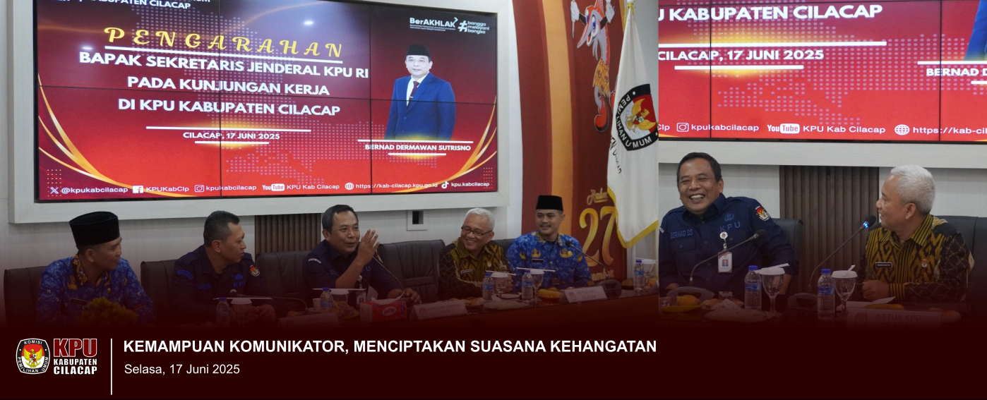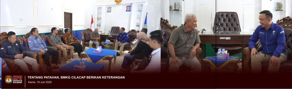 KPU Cilacap. Kamis, 19 Juni 25 Kepala BMKG satker Cilacap (BAGUS PRAMUJO, S.Si, M.Sc) beralamat di Jl Gatot Subroto No 20, Cilacap Regency menerima audiensi KPU.